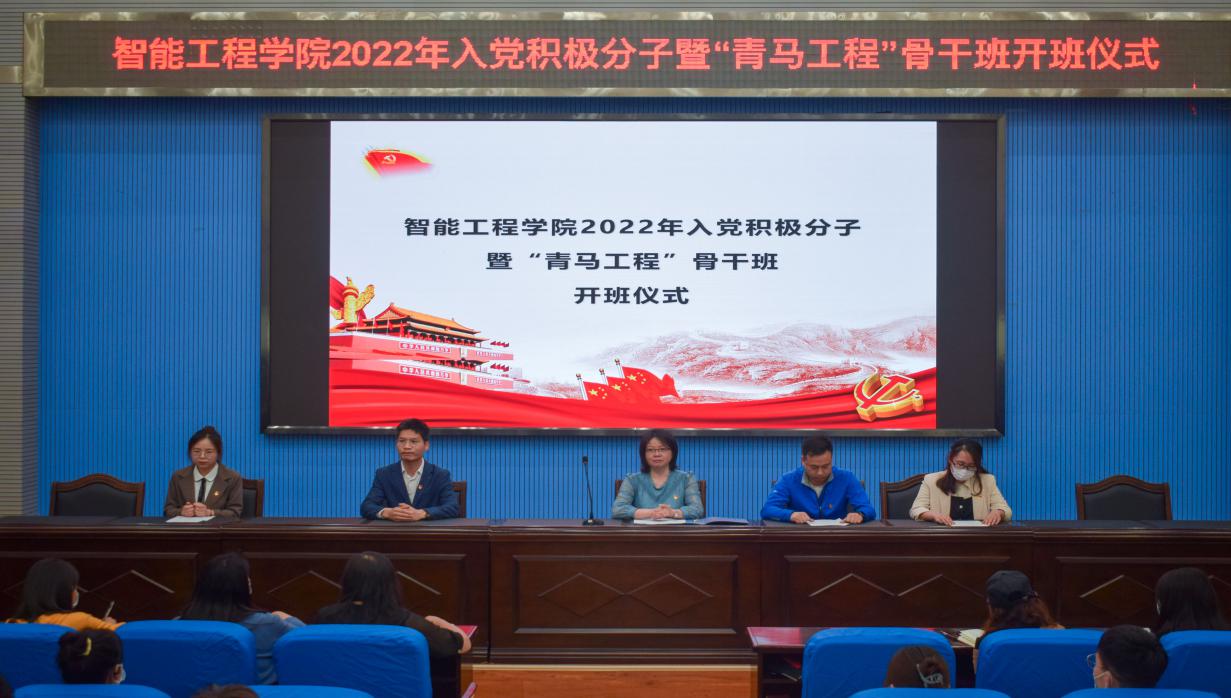 新闻网讯(通讯员 苏宇菲)为深入学习贯彻习近平新时代中国特色社会主义思想和党的十九大精神,落实习近平总书记关于青年工作的重要思想,引领青年学生学习“四史”、学习党的理论知识,端正入党动机、坚定理想信念,增进对党的政治认同、思想认同、情感认同。2022年4月9日上午8时,智能工程学院在学术报告厅开展入党积极分子暨“青马工程”骨干班开班仪式。